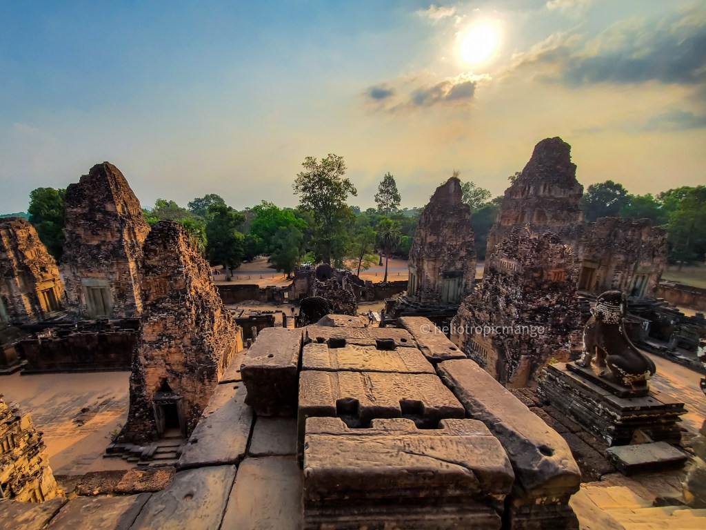 A well-preserved temple-mountain built in the 900s as a Hindu temple dedicated to Shiva by King Rajendravarman II. It was his state temple. Tourists like to catch the sunrise or sunset here so it’s open 5 am to 7 pm. We climbed a set of very steep stairs to be rewarded with the views. It was a test for Mama in regards to her bad back, and I think the fear of heights in general, but Somondy helped her up and down.