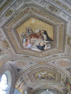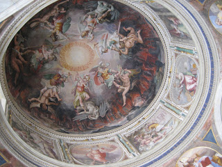 Way before heading in, our tour guide had prepared us for what we would see. She was very animated in her storytelling of the scenes in the artwork and behind the scenes. It was probably the highlight of the tour – both seeing the frescoes for myself and having such an entertaining and detailed introduction. Did I mention how much I appreciated the descriptions of the art work and a history of the Church at the time of each piece as well as the history/biography of the artists, popes, and others involved?